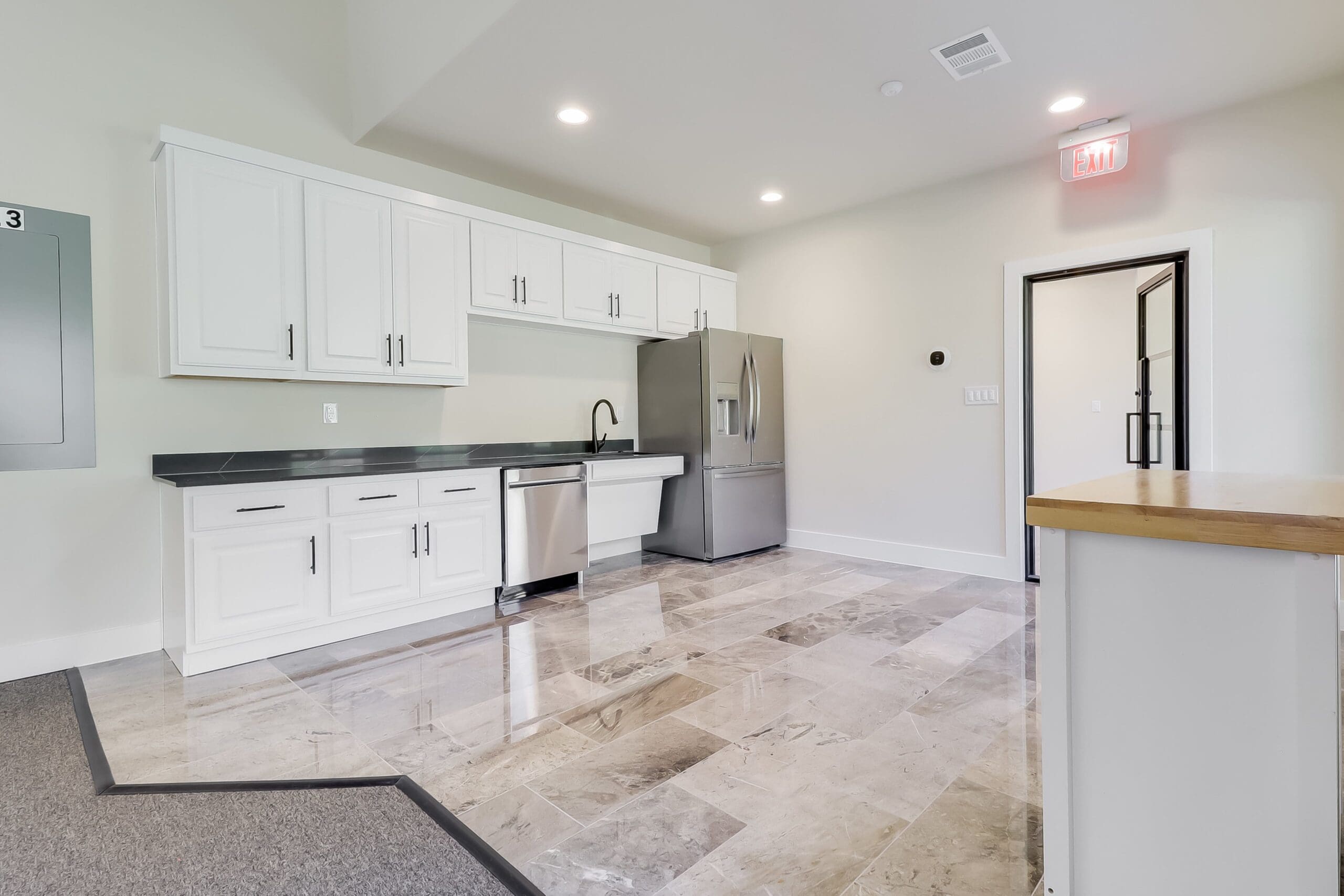 The sleek layout features a spacious open-plan collaborative area paired with two private offices that are ideal for executive use, client meetings, or focused work. High ceilings, abundant natural light, and a clean, modern aesthetic create an atmosphere that enhances productivity and projects professionalism.