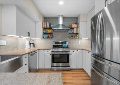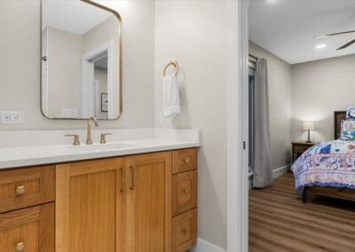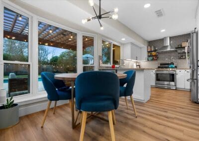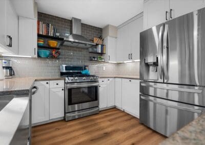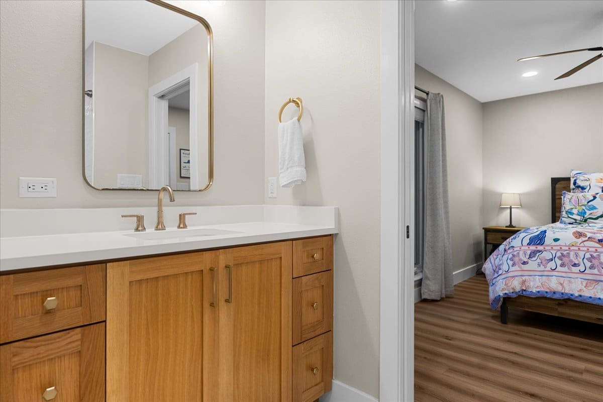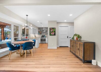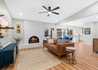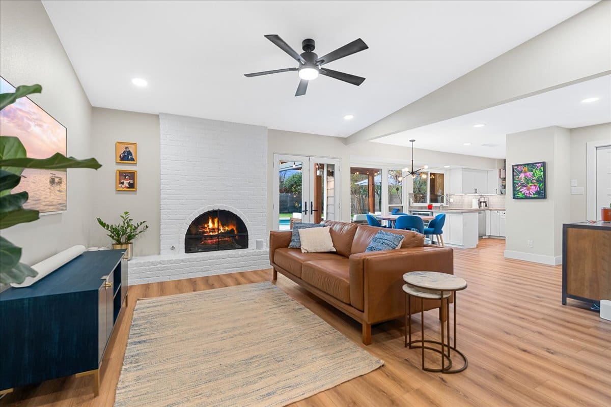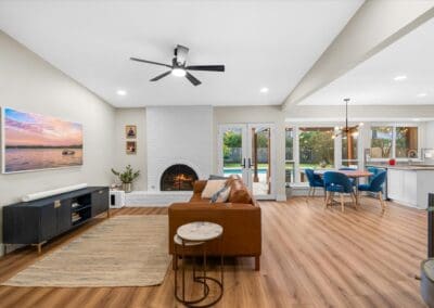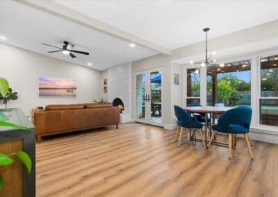 Inside, the renovation brings a level of quality and cohesion difficult to match in this price range. High-end finishes, custom cabinetry, modern lighting, luxury vinyl flooring, and an open layout create a polished, warm interior. The kitchen pairs clean aesthetics with functional design and connects naturally to both the living area and the backyard. The bathrooms have been completely reimagined with thoughtful materials that add a boutique-hotel feel throughout.
